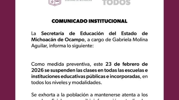 Educación Suspensión de Clases en Michoacán: Medida Preventiva por Seguridad Este Lunes 23 de Febrero Suspensión total de clases en todos los planteles públicos e incorporados de Michoacán. Editor20 horas ago