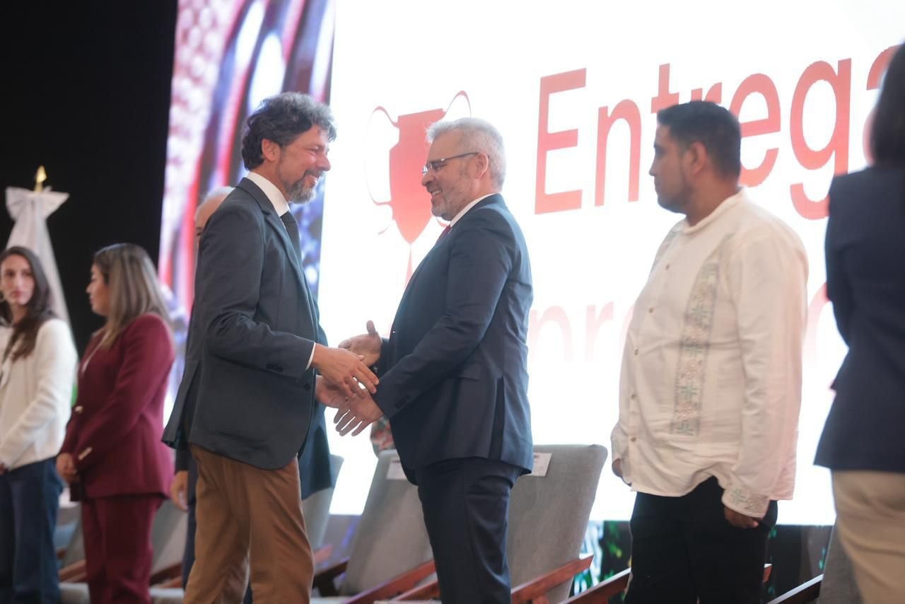 El gobernador Ramírez Bedolla recibió el reconocimiento GI Champions 2025 de manos de Riccardo Deserti, presidente de oriGIn y director general del Consorcio Parmigiano Reggiano, por su compromiso con la promoción de las Indicaciones Geográficas como motor de desarrollo regional y cooperación internacional. A su vez, entregó el primer Premio Michoacán al Producto de Origen a Gustavo Adolfo Ávalos Romero, representante del Consejo de Artesanos de las Catrinas de Barro de Capula, símbolo de identidad, creatividad y colorido michoacano.