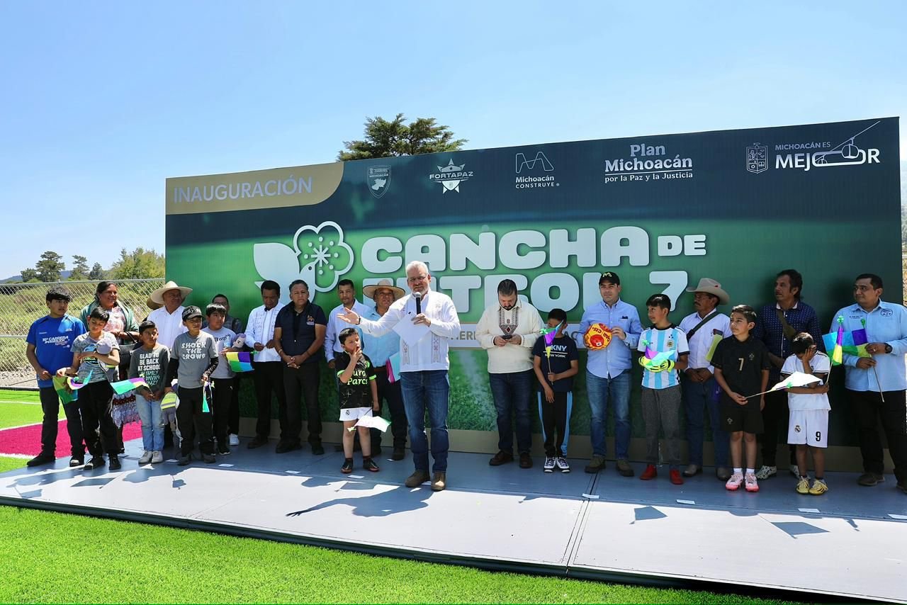 En un claro ejemplo de cómo el deporte une comunidades y fortalece el tejido social, el gobernador Alfredo Ramírez Bedolla dejó inaugurada una moderna cancha de fútbol 7 en la comunidad indígena con autogobierno de San Felipe de los Herreros, en Charapan, Michoacán. Esta obra, que beneficia directamente a más de 13 mil 500 habitantes, forma parte de la ambiciosa estrategia estatal para recuperar espacios públicos y prevenir el delito, promoviendo la sana convivencia entre niñas, niños y jóvenes.
