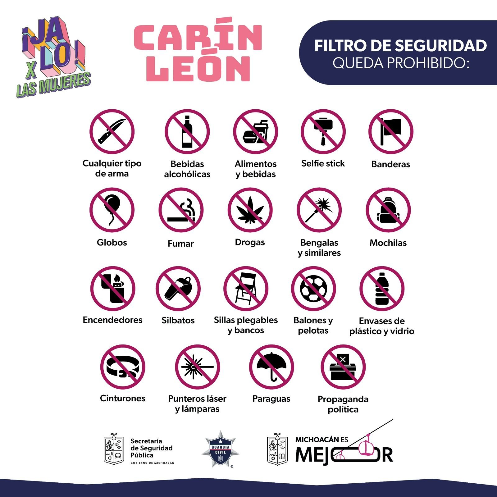 Para garantizar un ambiente seguro, ordenado y familiar en el concierto gratuito de Carín León este sábado 16 de agosto en el Estadio Morelos, la Secretaría de Seguridad Pública (SSP) de Michoacán ha anunciado una lista detallada de objetos que estarán prohibidos para ingresar al recinto. Se instalarán filtros de revisión en los accesos 1, 2, 3, 4, 6 y 7, donde agentes de seguridad verificarán que los asistentes no porten artículos que puedan poner en riesgo la seguridad del evento.