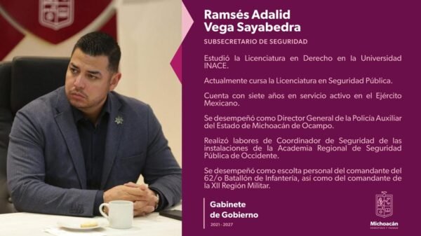 General Ramsés Adalid Vega Sayabedra, nuevo subsecretario de Operación Policial de Michoacán Ramsés Adalid Vega Sayabedra es el nuevo subsecretario de Operación Policial en Michoacán Editornoviembre 16, 2025