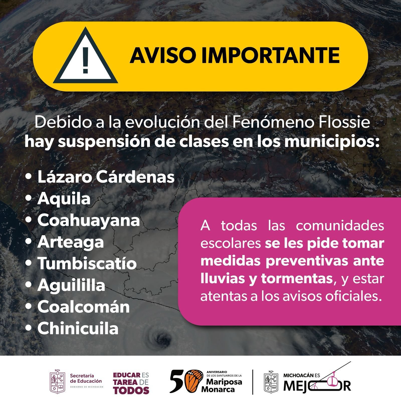 La llegada de la Tormenta Tropical Flossie a las costas de Michoacán ha provocado la suspensión de clases en ocho municipios del estado, una medida preventiva anunciada por el gobernador Alfredo Ramírez Bedolla para proteger la integridad de estudiantes y docentes. A partir de este lunes, se detendrán las actividades educativas en todos los niveles —desde educación inicial hasta superior— en Lázaro Cárdenas, Aquila, Coahuayana, Chinicuila, Coalcomán, Tumbiscatío, Arteaga y Aguililla.